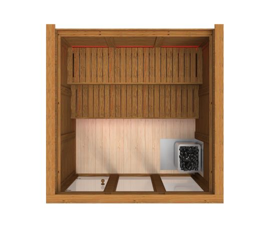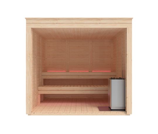 Ingen ovn – saunaen leveres uden varmeenhed. Mulighed for selv at tilkoble ovn.