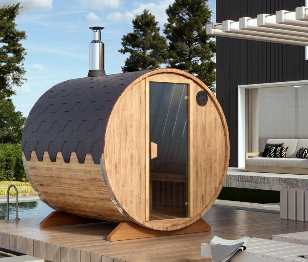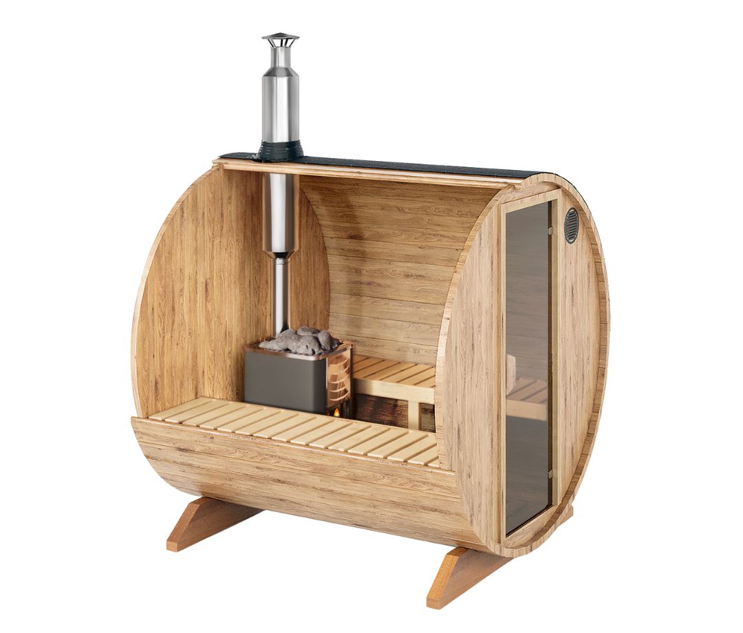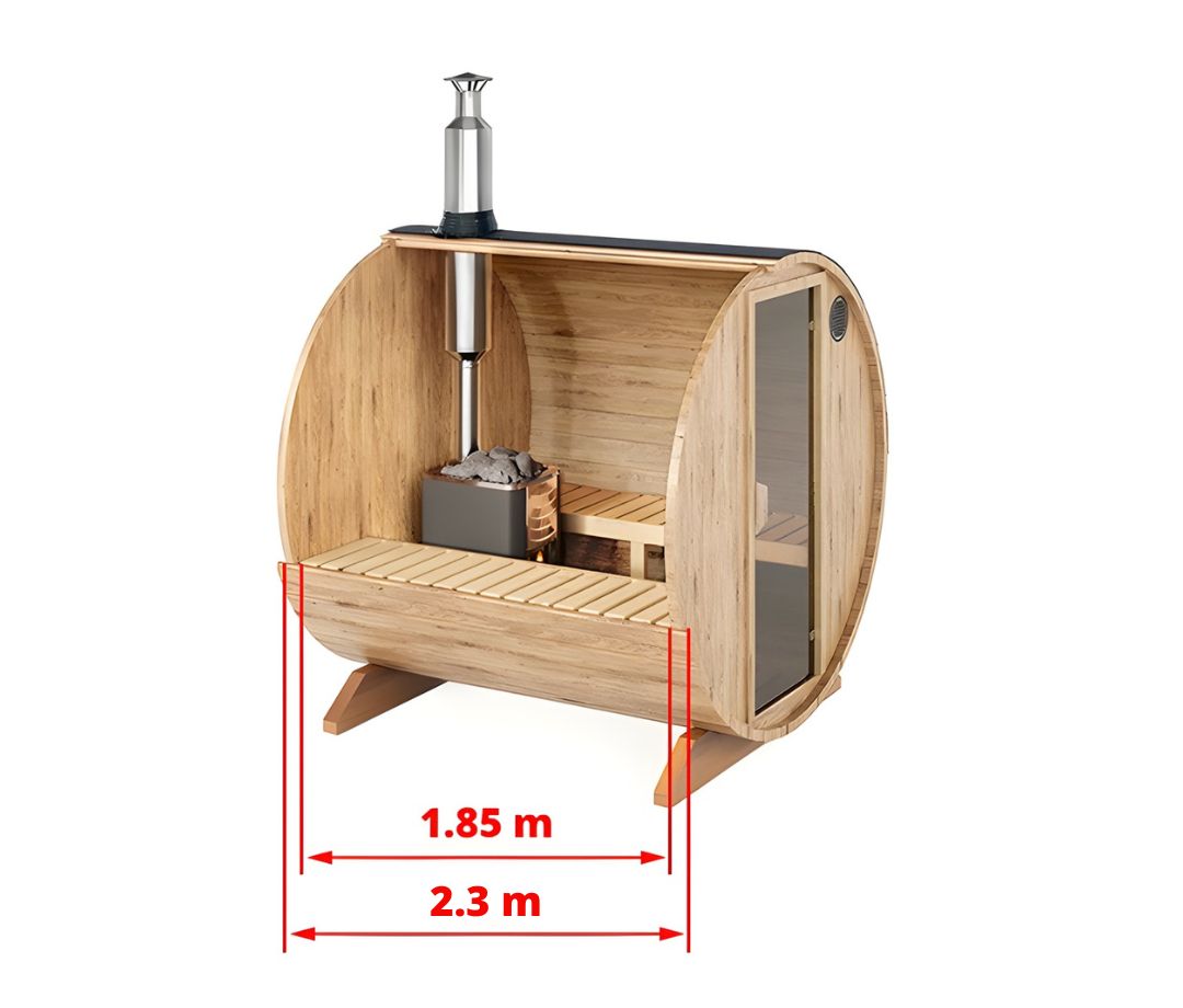 En praktisk og familievenlig model, hvor den ekstra længde giver plads til op til 4–5 personer uden at ændre på den kompakte 2-meters diameter. Den længere kabine giver bedre udstrækning og fleksibel siddeplads, samtidig med at saunaen stadig er nem at placere i haven.
