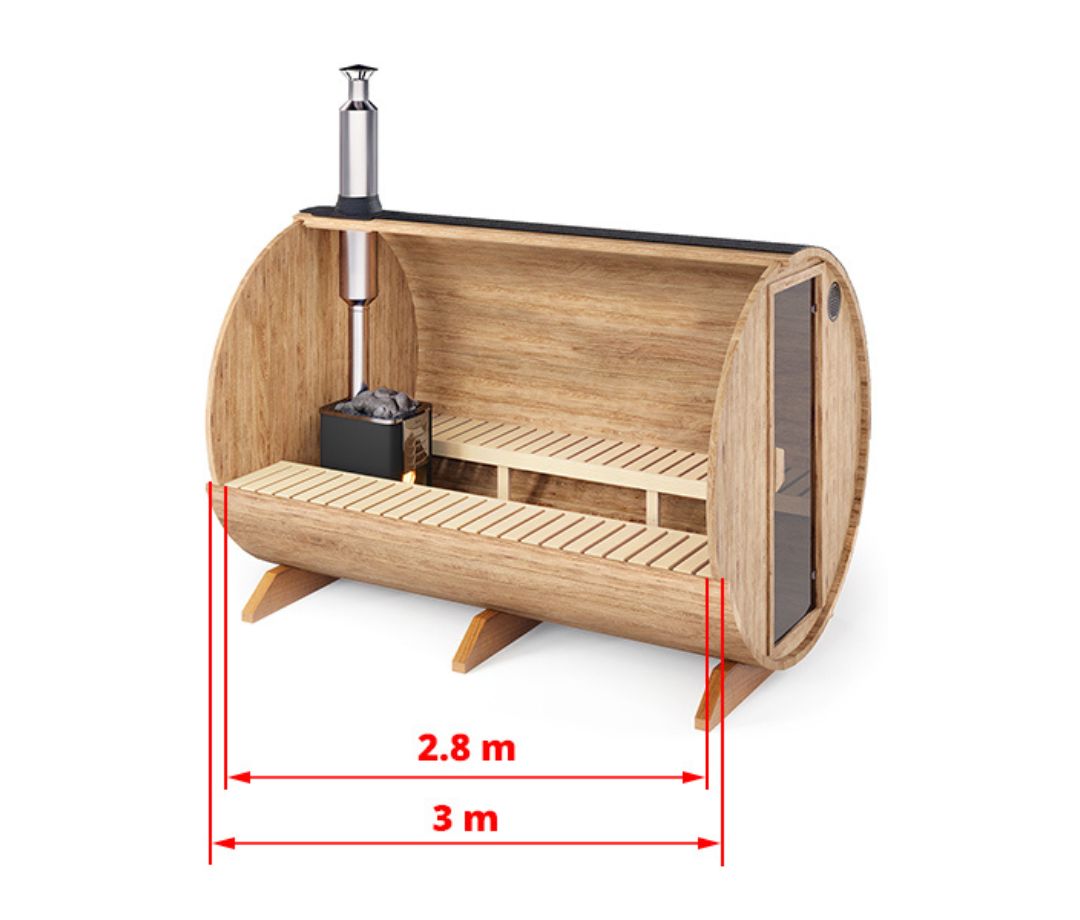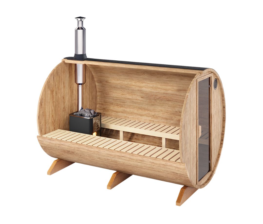 En lang og kapacitetsstærk model, der giver plads til op til 6 personer uden at ændre på den kompakte 2-meters diameter. Den ekstra længde på 3 meter gør det muligt at sidde mere frit eller udnytte begge bænke fuldt ud, hvilket giver en rummelig og social saunaoplevelse.
