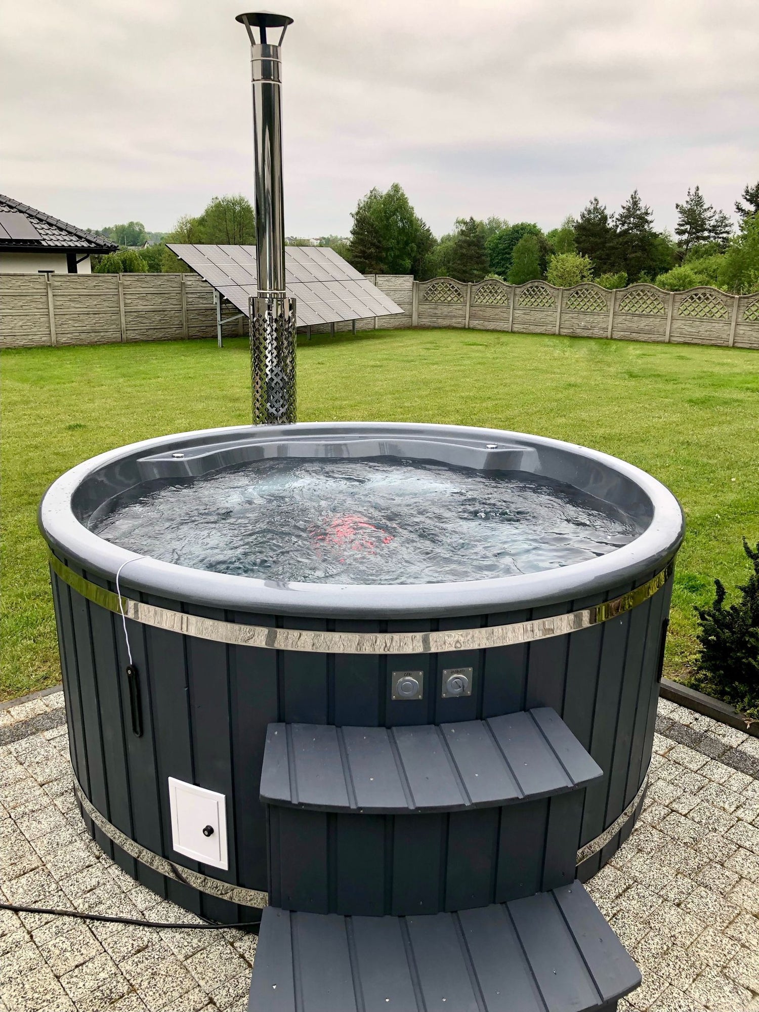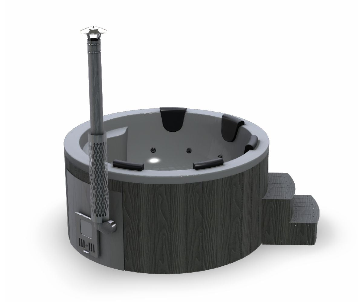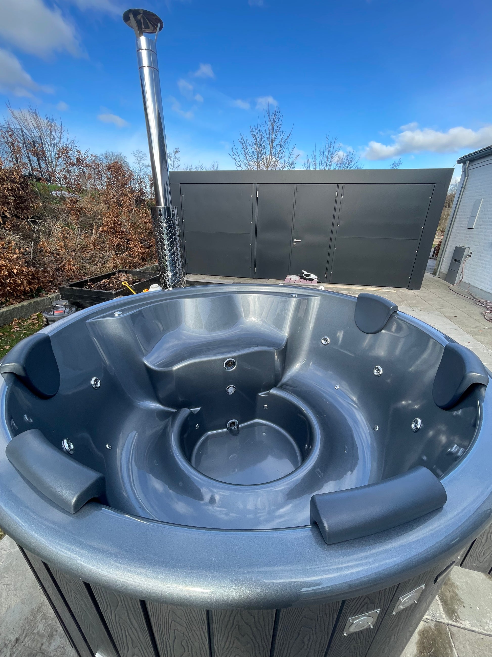 Det lidt større vandvolumen betyder en anelse længere opvarmningstid, men til gengæld får du en mere rummelig og behagelig badeoplevelse. Samme gennemførte kvalitet som de øvrige modeller – bare med mere plads til hygge under åben himmel.