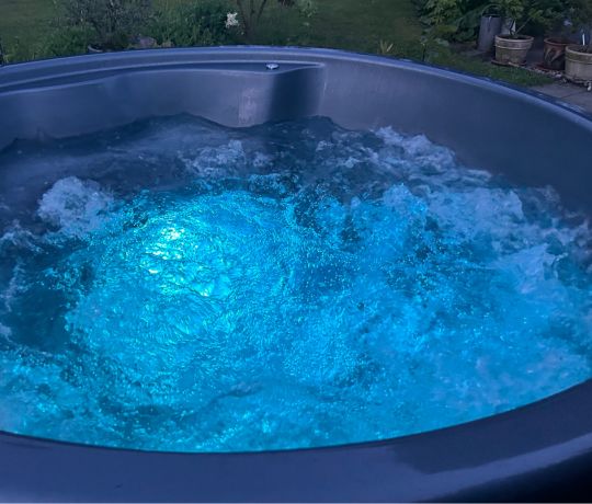 Ekstra rummelig model med god plads til familie og gæster. Den større diameter giver mere albuerum og højere komfort, så alle kan sidde afslappet – også ved længere bade.