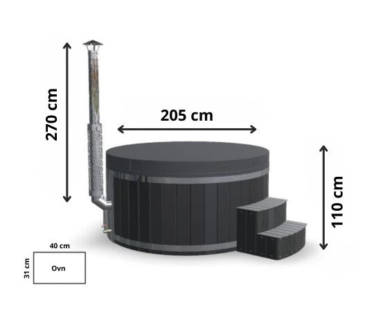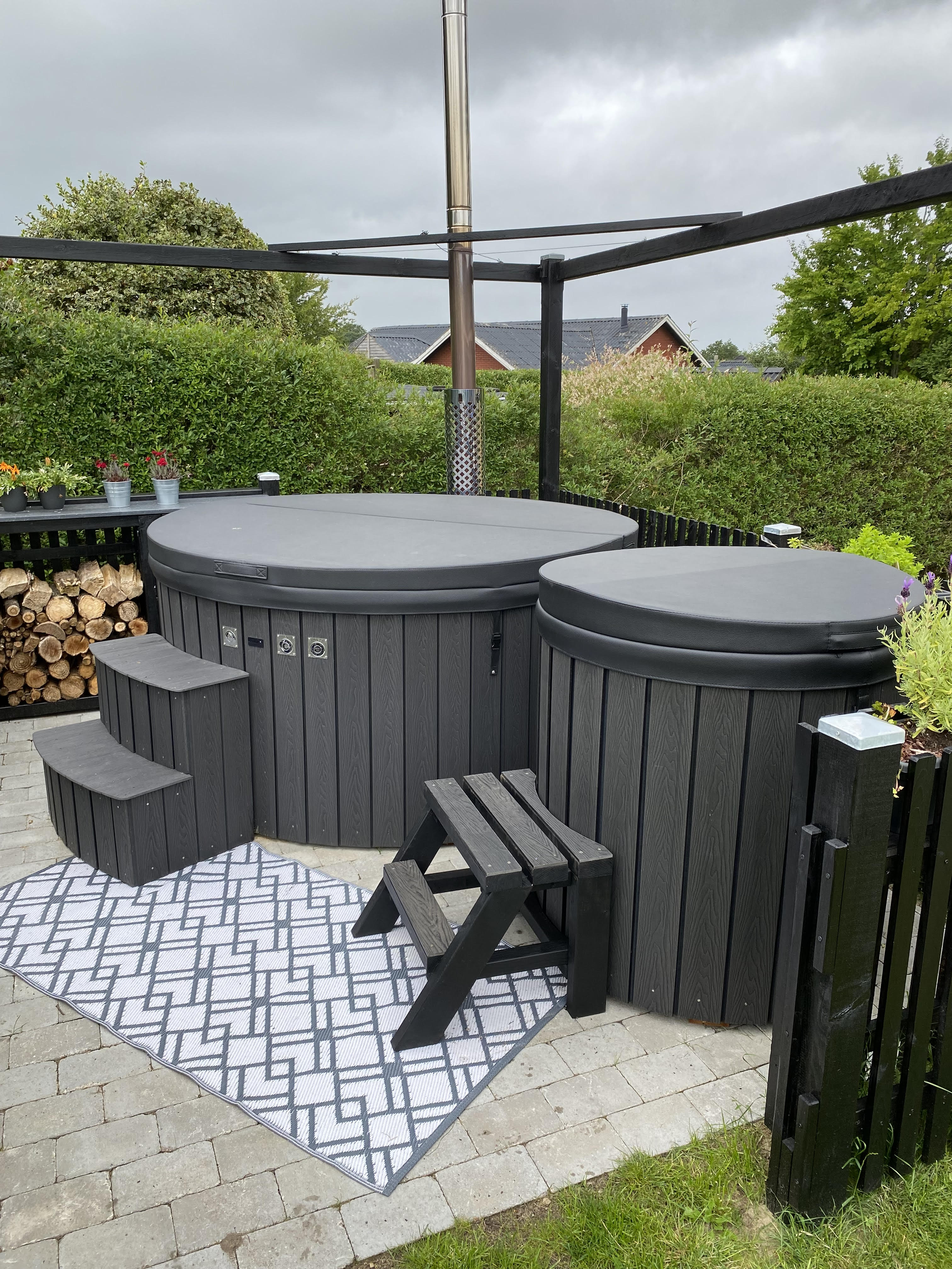Det lidt større vandvolumen betyder en anelse længere opvarmningstid, men til gengæld får du en mere rummelig og behagelig badeoplevelse. Samme gennemførte kvalitet som de øvrige modeller – bare med mere plads til hygge under åben himmel.