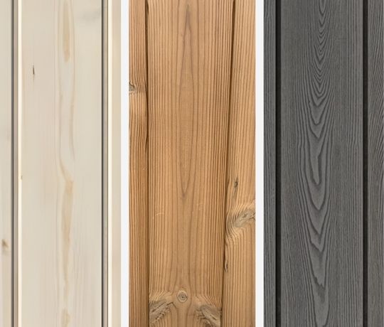 Vælg mellem fyrretræ, termotræ eller komposit.