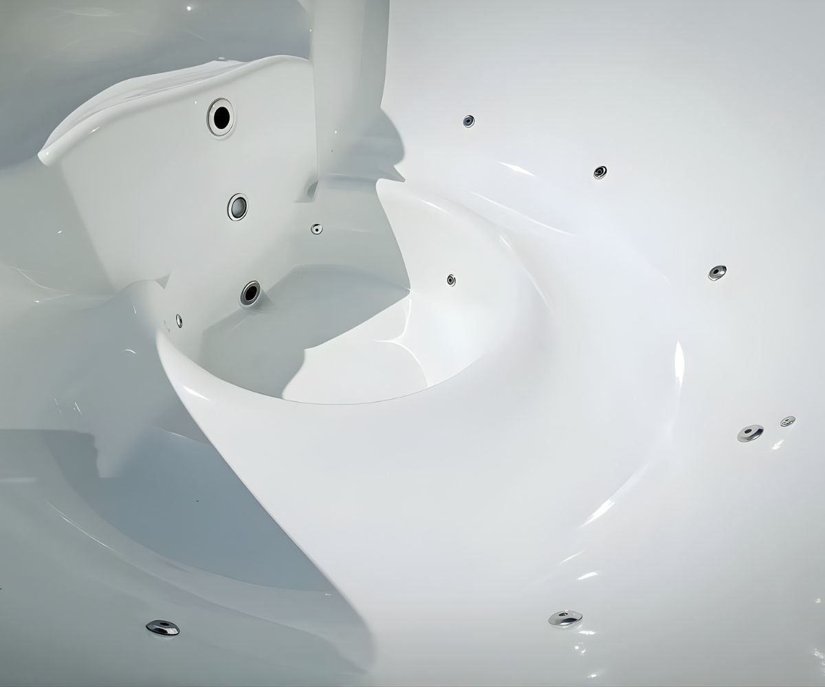 Ekstra rummelig model med god plads til familie og gæster. Den større diameter giver mere albuerum og højere komfort, så alle kan sidde afslappet – også ved længere bade.